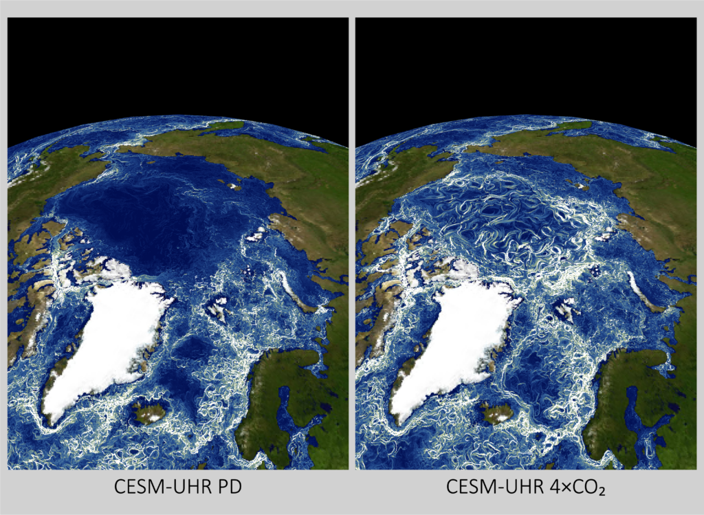 Due to the remoteness of polar regions, it has remained challenging to study the impact of global warming on small-scale ocean currents and marine ecosystems using ship-based observations and satellite data. Instead, climate scientists have relied heavily on climate computer models. However, the current generation of such models lacks the spatial resolution to resolve small-scale ocean processes relevant to MHS and the production of turbulence and horizontal mixing.